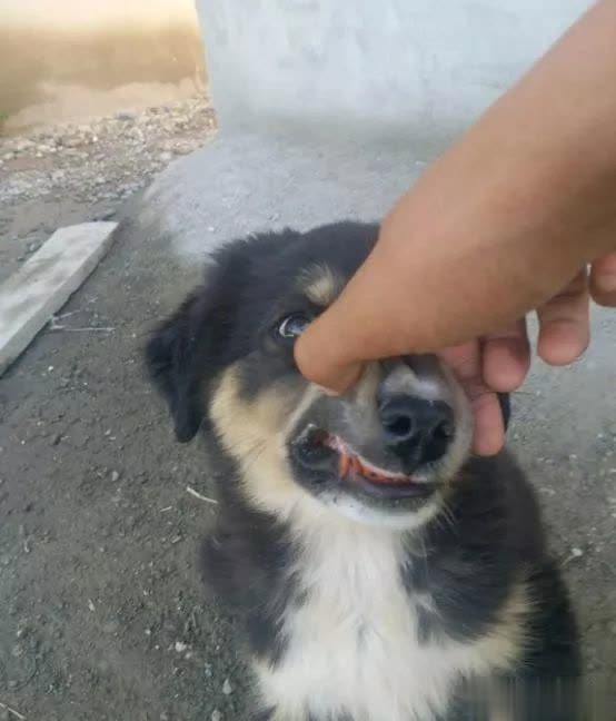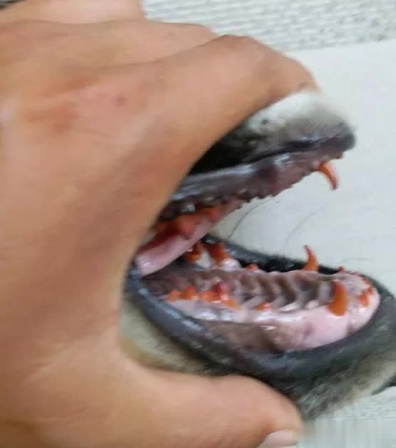 从外在看,真的看不出这狗有啥不同样,这不解白为啥会长一口红色的牙齿!