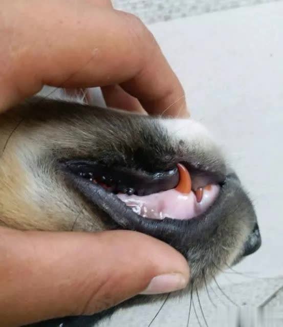而况这牙齿并不是只消一个红色的,它嘴里的牙齿十足是红色的!真的是太神奇了。给一个红色的牙齿来个特写,还真的看不出来染的行踪...