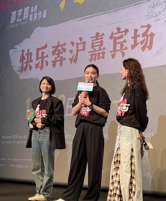 11月10日,上海,《好东西》主创出席映后交流行径。左起:编剧/导演/编订同样邵艺辉,主演宋佳,钟楚曦。 不雅察者网丁樑 摄