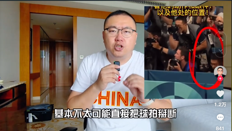 王楚钦的球拍,根柢不是随机被东谈主踩断的。反而是被东谈主特意,一手持拍柄,与大地成一定角度后,再拿鞋子固定板面后,坏心撅断的。