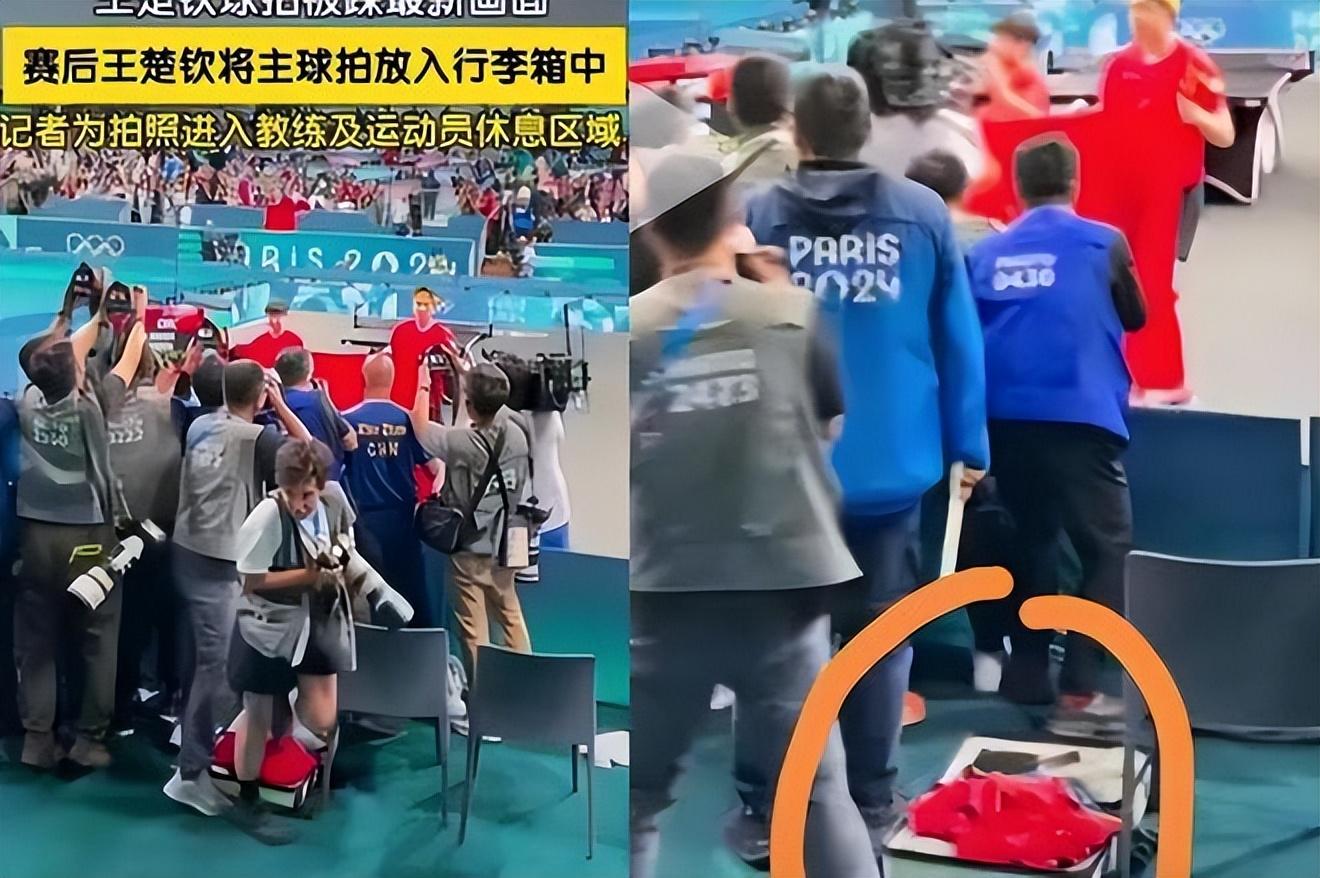 有多位不雅众,从不同的角度拍到了,这个3488记者即是踩到,王楚钦球拍的“元凶”。
