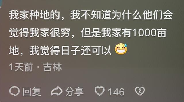 哈哈,你家有1000亩地啊,这然而个大农场主啊!地多就意味着产出多,而况当今农居品价钱也可以,你们家的收入应该很可不雅吧