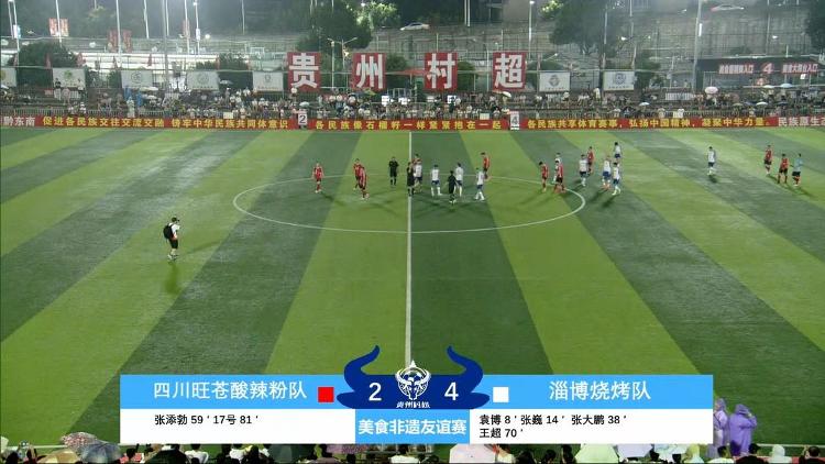 上周末,在贵州村超寰宇好意思食非遗友谊赛“超等星期六”行动中,淄博烧烤队以4:2的得益在与四川旺苍酸辣粉队的对战中胜出。这场“顶流相逢”的足球赛上,除了“烧烤”,“世界足球发源地”也成为讲明们平素说起的“淄博关节词”。